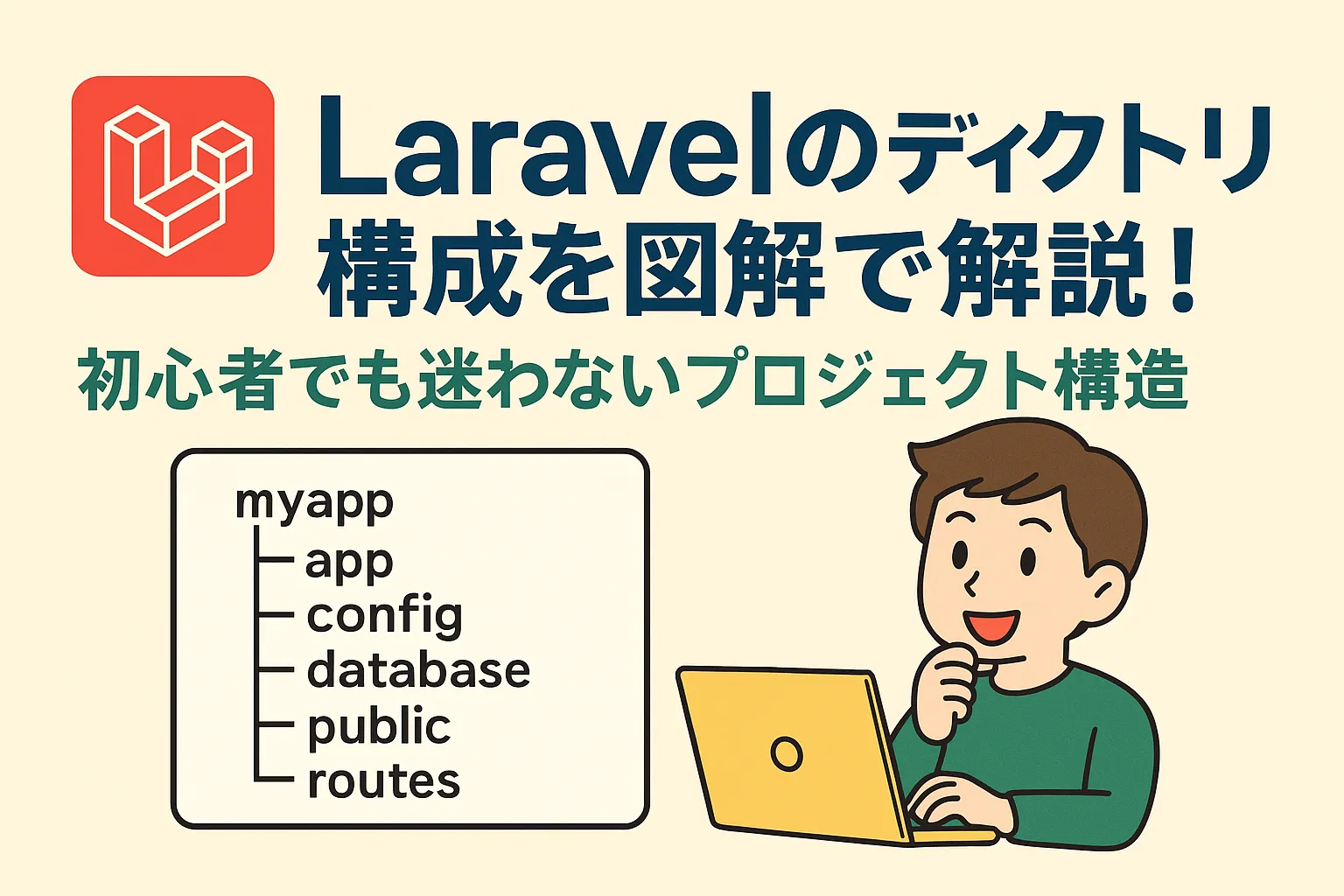 Laravel初心者向けに、ディレクトリ構成を図解と実例でわかりやすく解説!ルーティングやコントローラ、ビューの役割まで丁寧に説明。迷わず学習を始めたい方必見です。