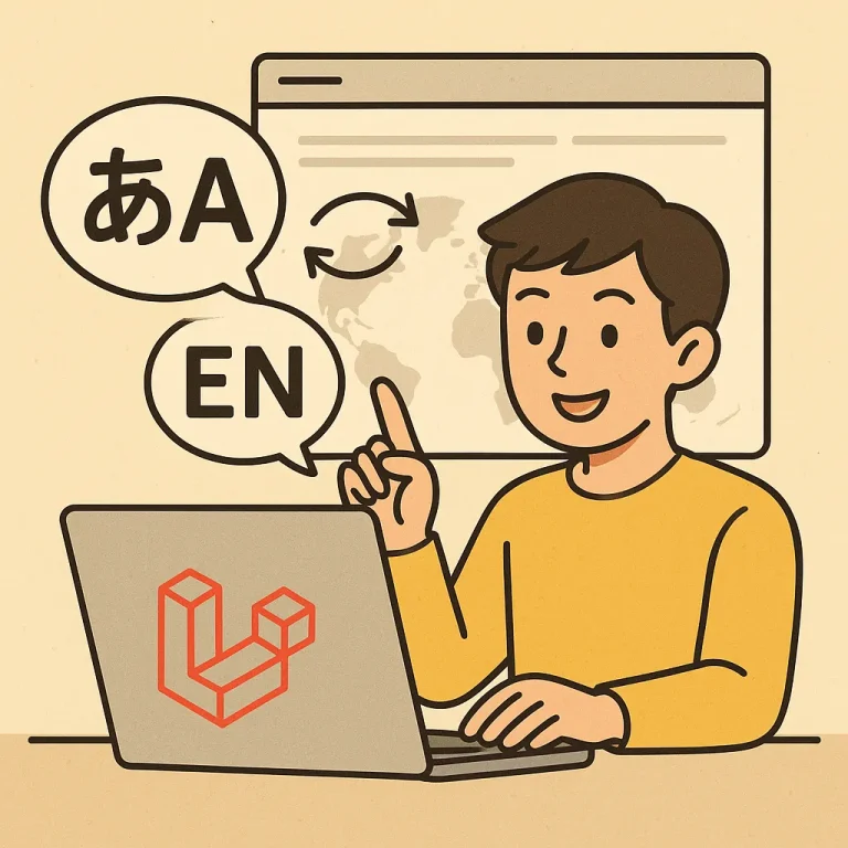 Laravelの多言語化の核心は、キーと値で構成された翻訳ファイルと、App::setLocale() によるシンプルな言語設定にあります。この基本的な仕組みと、ミドルウェアを利用した賢い言語切り替えロジックを組み合わせることで、日本語と英語の切り替えは、もはや難しい課題ではありません。